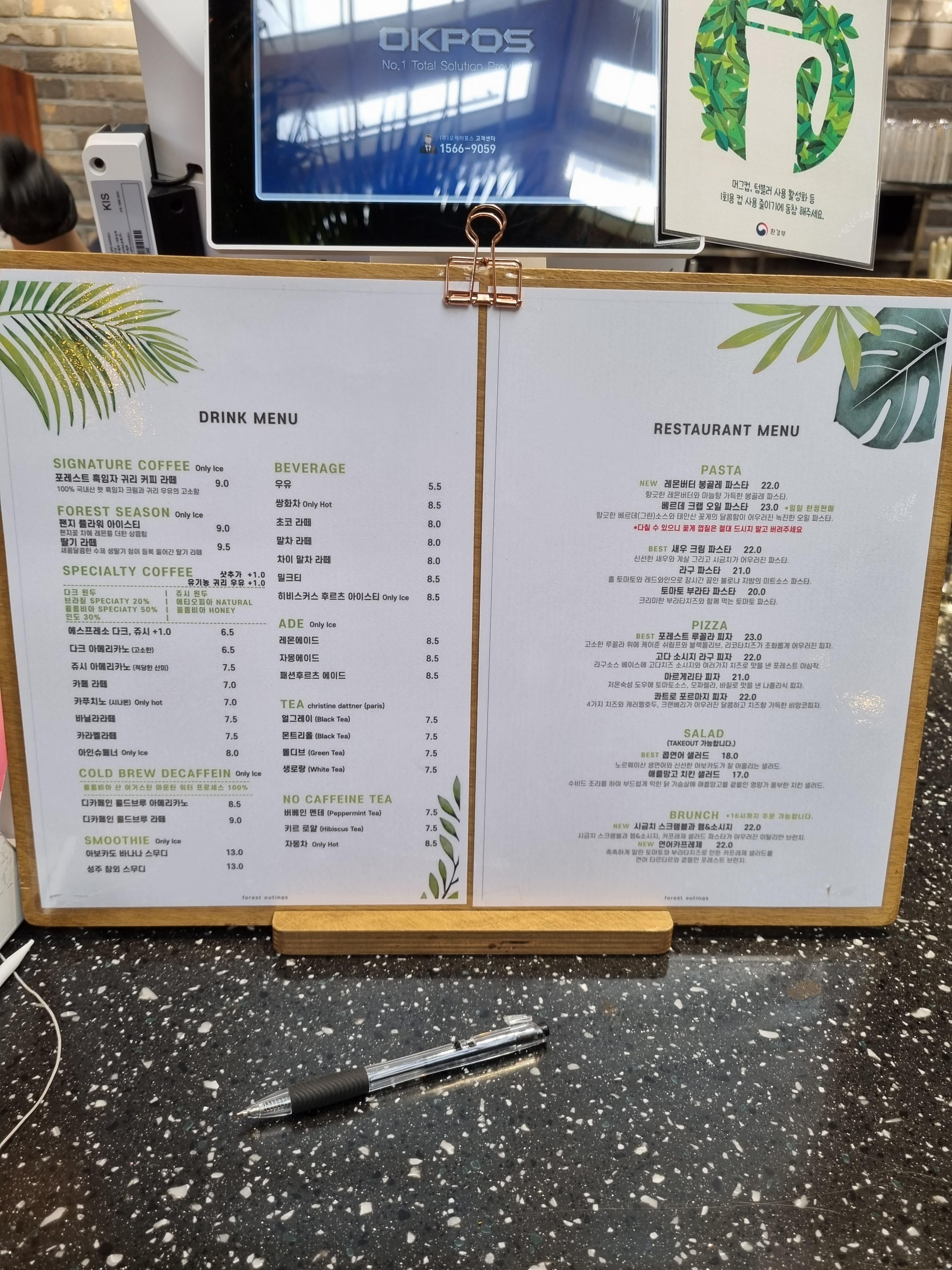 음료로는 포레스트 흑임자 귀리 라떼와 아메리카노를 주문했습니다